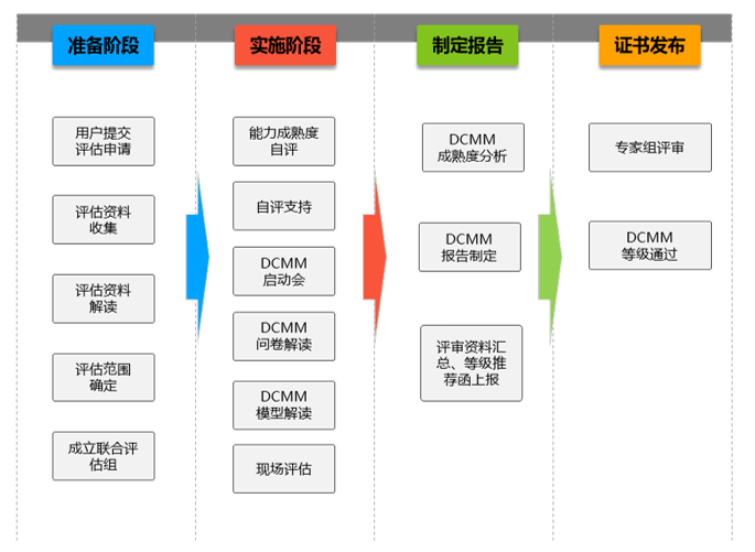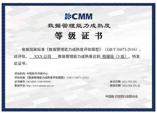DCMM(数据管理能力成熟度评价模型)评估划分为五个等级,,自低向高依次为初始级、、、、受管理级、、、稳健级、、量化管理级和优化级,,不同等级代表企业数据管理和应用的成熟度水平不同,,证书自颁发之日起有效期3年