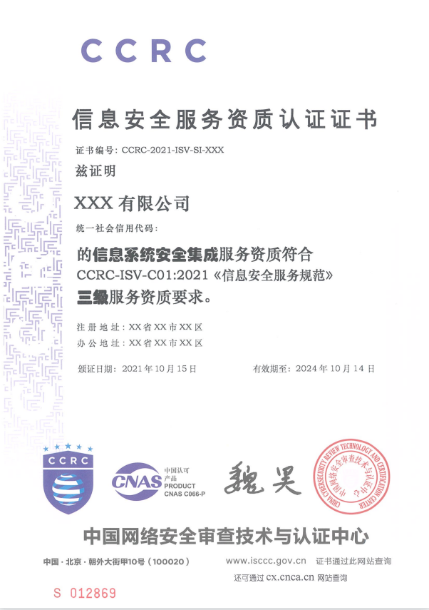 由中国网络安全审查认证和市场监管大数据中心颁发